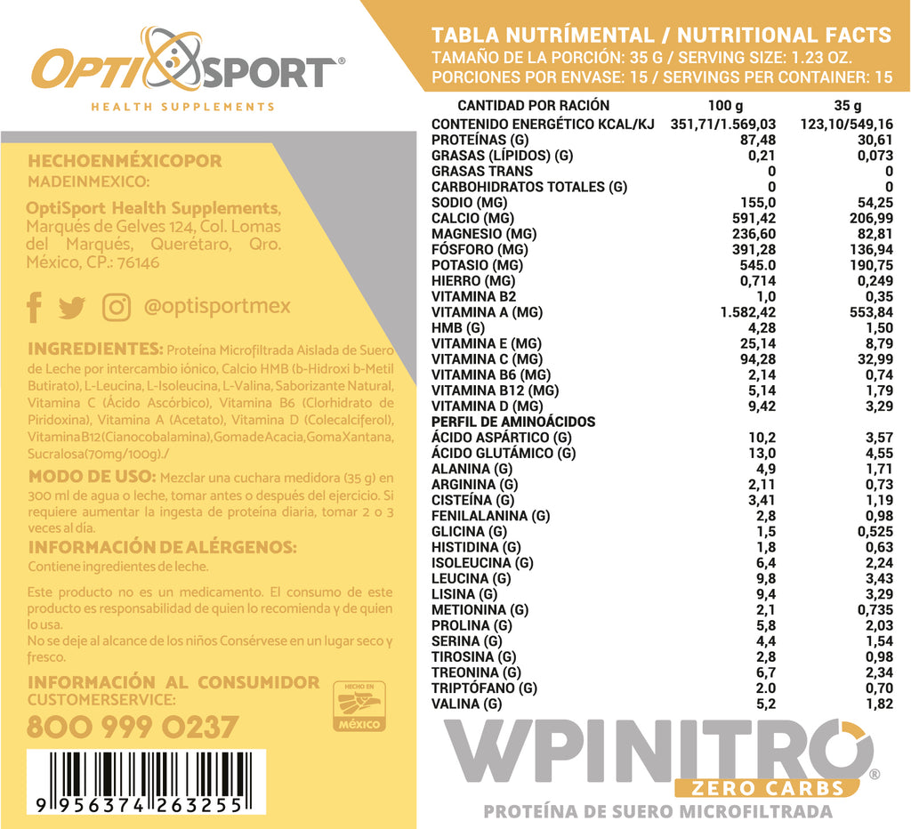 WPI NITRO® contiene Proteína de Suero de Leche Isolatada (microfiltrada) de alta calidad , sin grasa, sin lactosa, sin hidratos de carbono y sin colesterol.