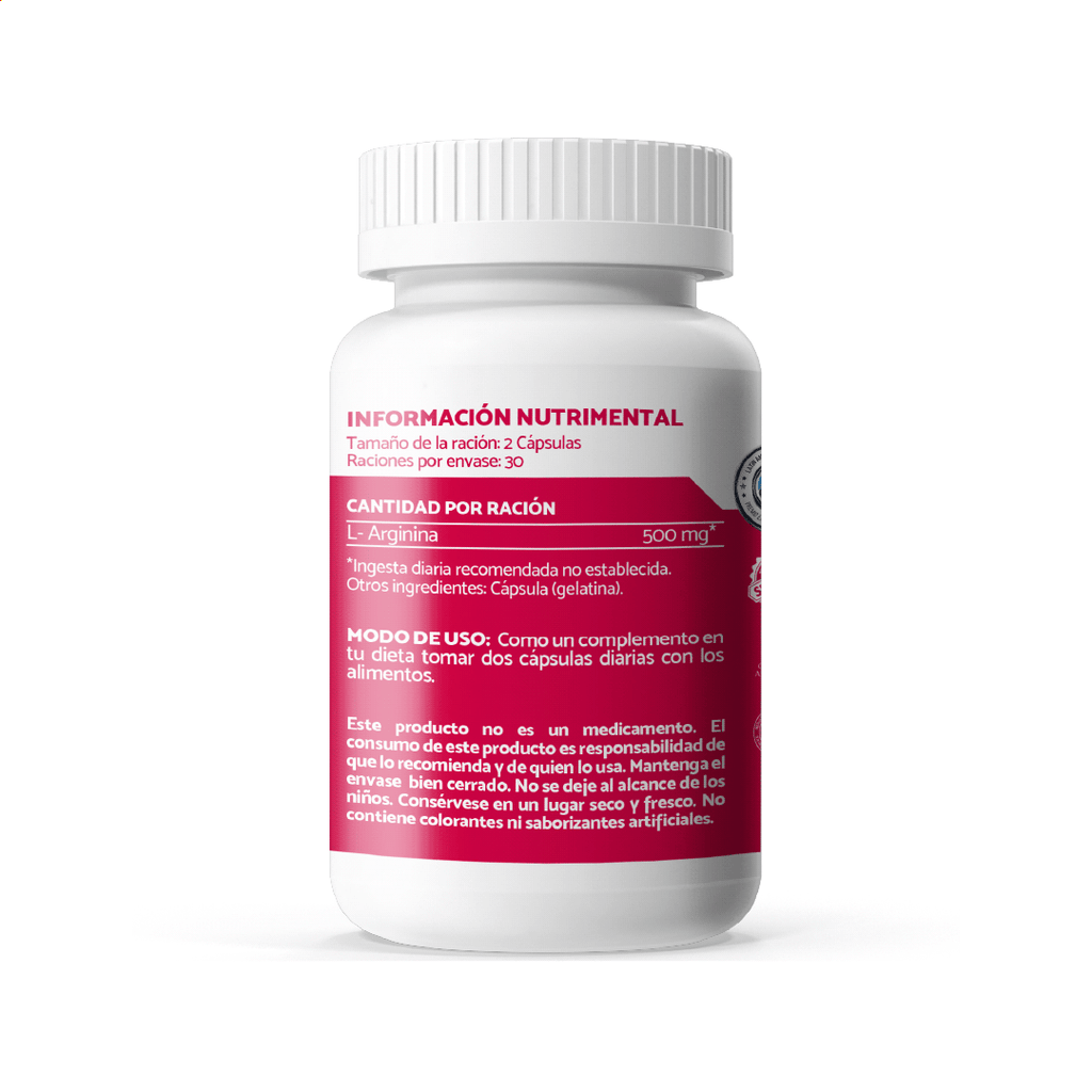 La L-Arginina es un aminoácido esencial, es necesario para la síntesis de las proteínas del cuerpo. A pesar de que el cuerpo la produce normalmente, en ocasiones es necesario complementarla a través de la dieta. Su principal característica es ser el principal promotor del óxido nítrico, que es un vasodilatador. La arginina se puede encontrar en grandes cantidades en los frutos secos como las nueces y piñones y en cantidades más pequeñas en la leche, queso y carnes rojas y de aves.