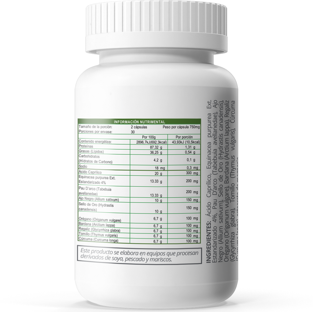 Es un compuesto de ingredientes que ayudan a mejorar la permeabilidad digestiva, a restaurar las paredes intestinales controlando la población de bacterias patógenas alojadas en el intestino delgado, controlar la acides estomacal y estimula la actividad antibacteriana, fungistática por lo que provee una actividad antiinflamatoria, a su vez estimular el bolo fecal para un buen tránsito intestinal.