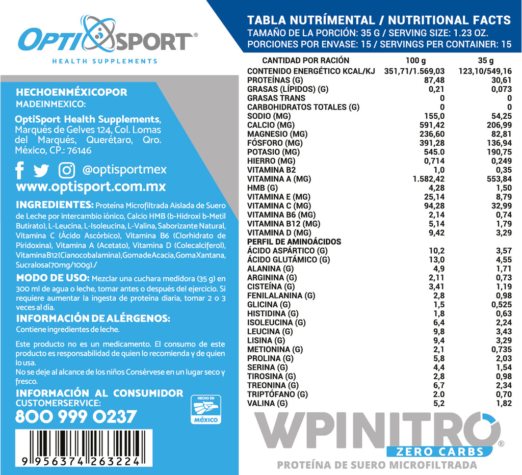 WPI NITRO® contiene Proteína de Suero de Leche Isolatada (microfiltrada) de alta calidad , sin grasa, sin lactosa, sin hidratos de carbono y sin colesterol.